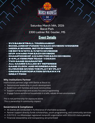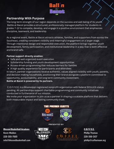 This page provides a private overview of partnership opportunities connected to the Battle at Bacot event platform. If you’ve received this link, you’re invited to explore our partnership opportunities.